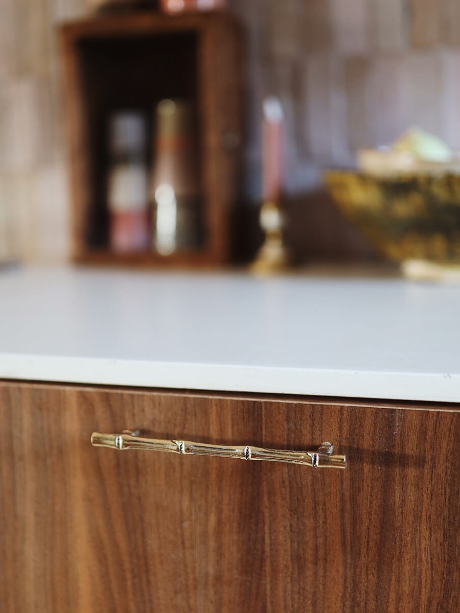 Este tirador que imita al bambú, 100 % hecho a mano en India, está elaborado con latón reciclado y presenta un acabado dorado brillante. Diseñado para aportar estilo y funcionalidad a tu hogar, es perfecto para armarios, cajones y puertas.