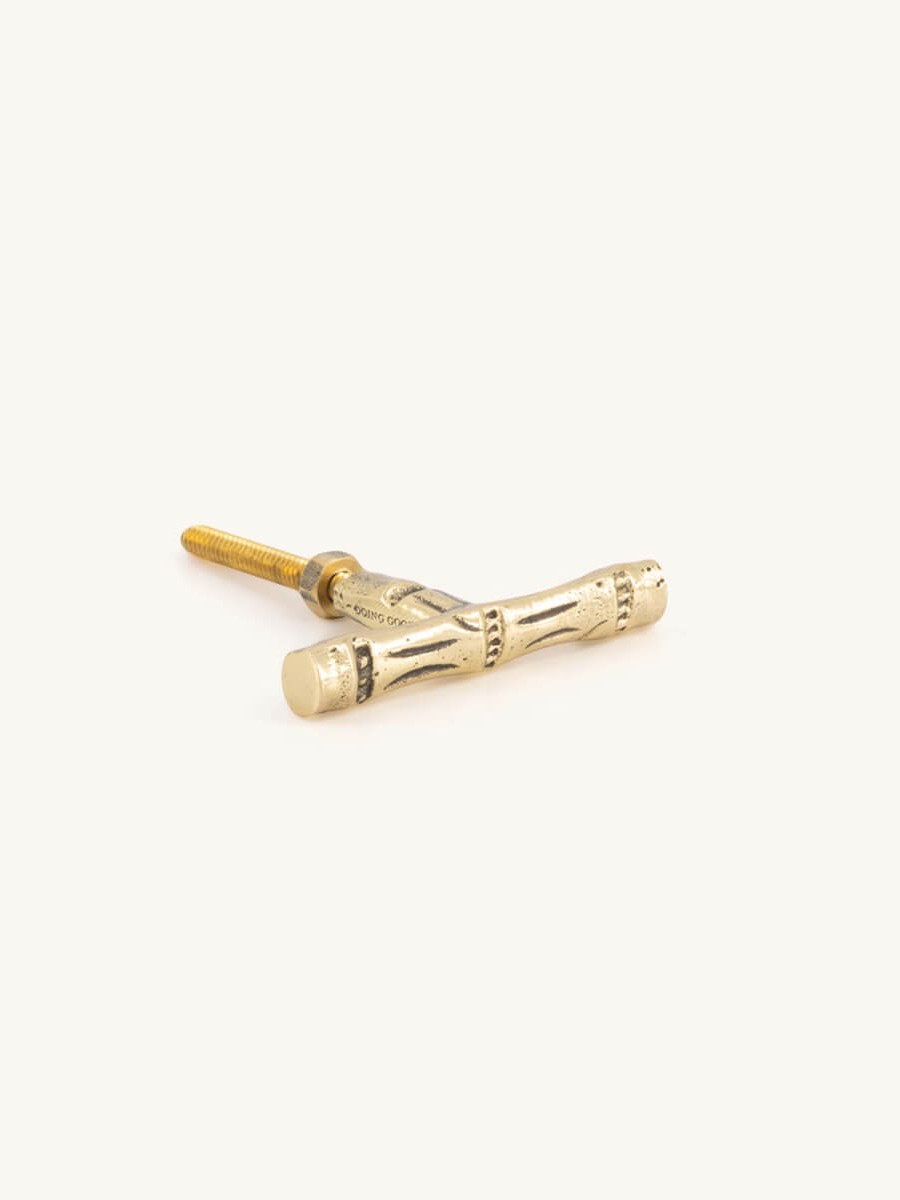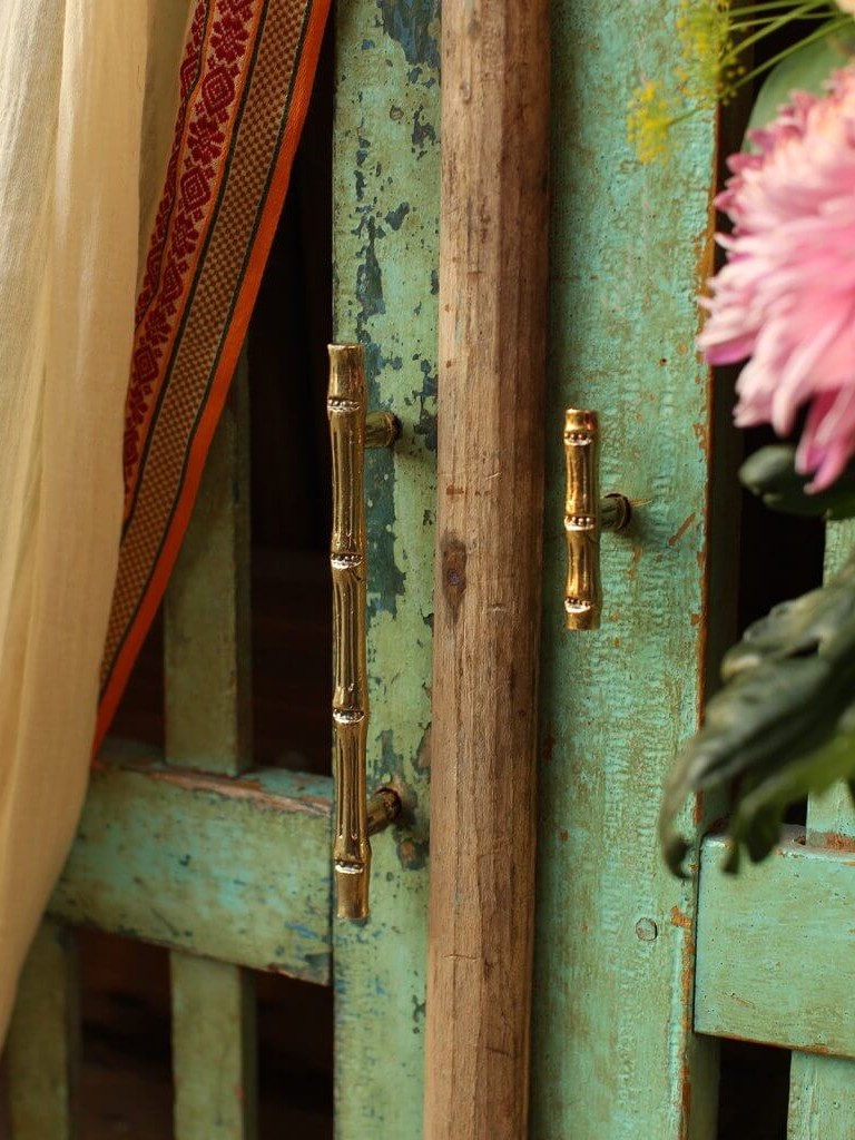Este tirador que imita al bambú, 100 % hecho a mano en India, está elaborado con latón reciclado y presenta un acabado dorado brillante. Diseñado para aportar estilo y funcionalidad a tu hogar, es perfecto para armarios, cajones y puertas.