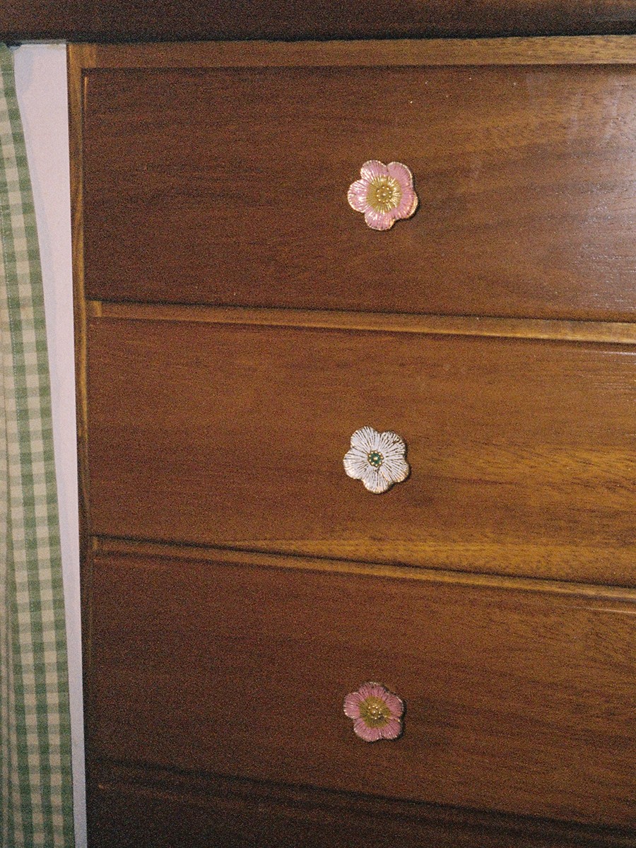 Fabricado en latón reciclado, este pomo mediano luce un precioso diseño floral blanco con intrincados detalles verdes en el centro. Perfecto para renovar cajones, armarios o roperos, combina sostenibilidad con un estilo atemporal.